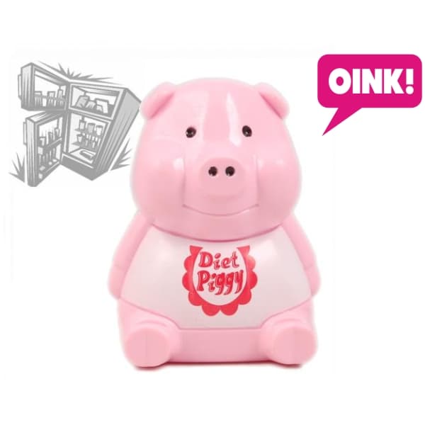 Ο Συναγερμός Δίαιτας Diet Piggy θα γίνει ο πιστός σας σύμμαχος. Απλά βάλτε το γουρουνάκι στο ψυγείο ή εκεί που κρατάτε τις λιχουδιές και όταν ανοίξετε την πόρτα θα ακούσετε τον ήχο ενός γουρουνιού oink oink! Μετά από αυτό μάλλον θα ξανακλείσετε το ψυγείο χωρίς να θέλετε να φάτε κάτι...